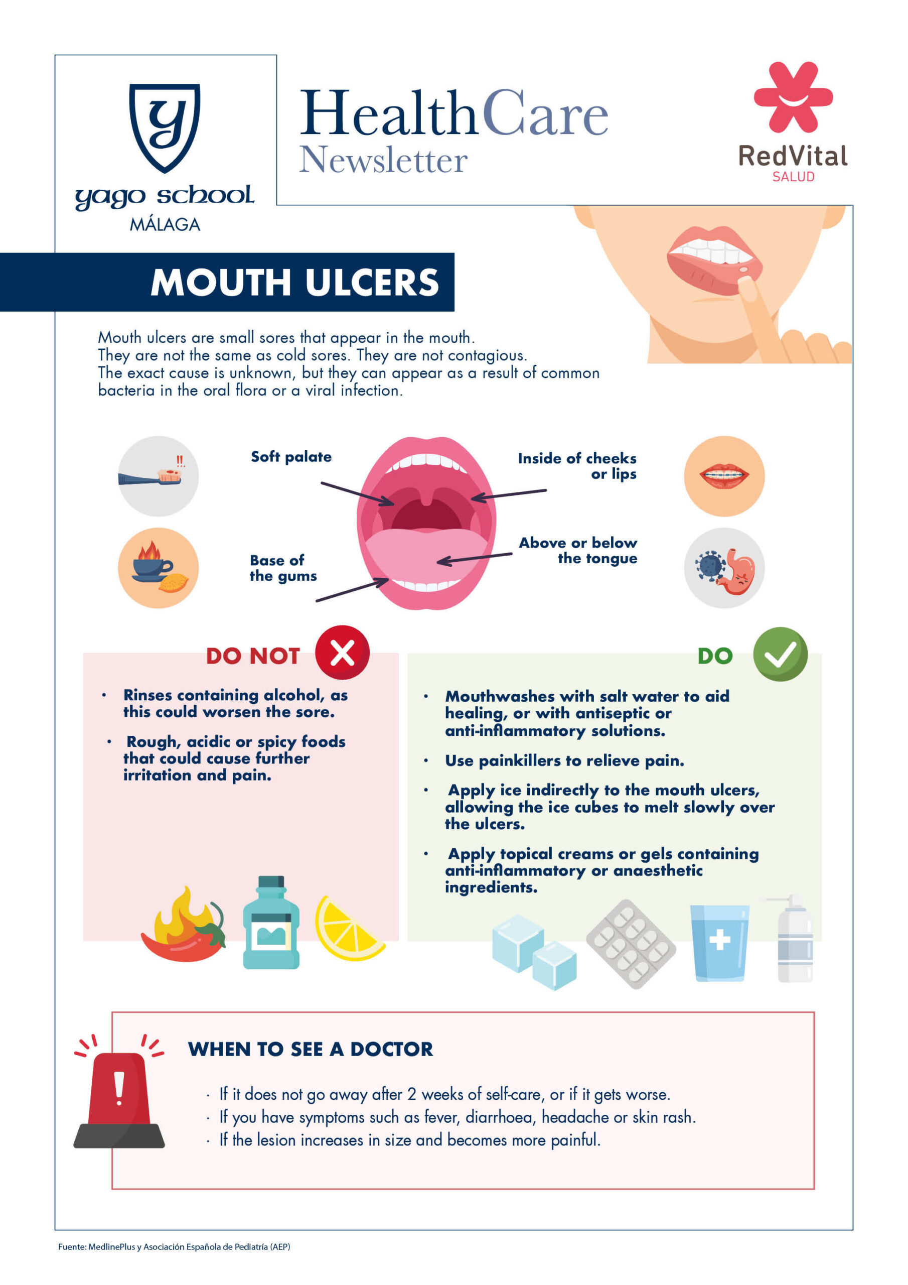 The nursing team at Yago School Málaga recommends some simple measures to help reduce discomfort and support healing: